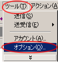 | 1、 | Outlook2000を起動し、メニューバーの【ツール】→【オプション】の順にクリックします。 | |